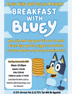 Bring the whole crew to Chula Vista Golf Course for a morning packed with pancakes, pictures, and pure Bluey joy. 💙